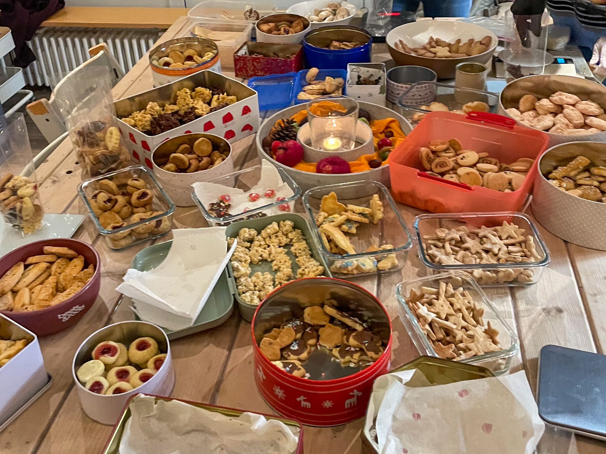 In der Küche haben wir leckere Plätzchen gebacken, die wir auch am Adventsmarkt verkaufen.